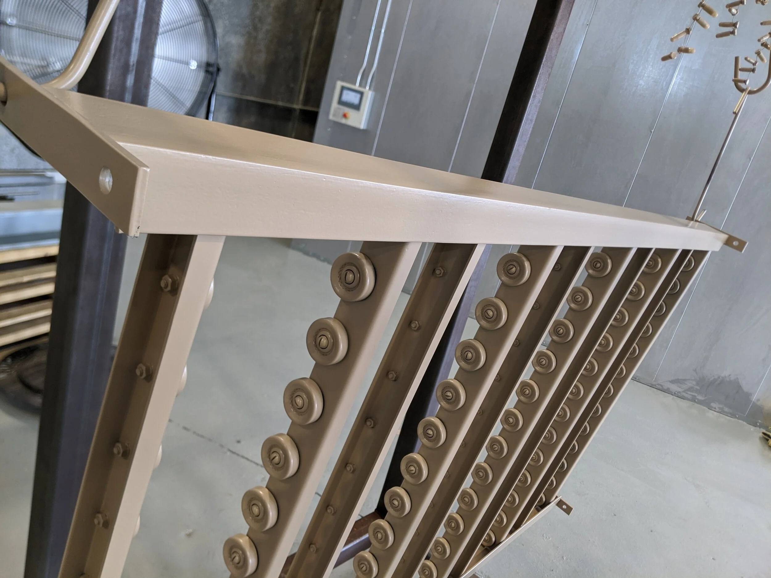 Powder coating is baked at 400 F or less in our 25’ or 15’ oven. We offer any powders that do not require a certifiable applicator. Our stock powders can be found in the Tiger Drylac Essentials Vol. 4 color catalog. We have catalogs and physical samples of colors available upon request. In addition, we can apply any powders available for purchase from any powder suppliers.